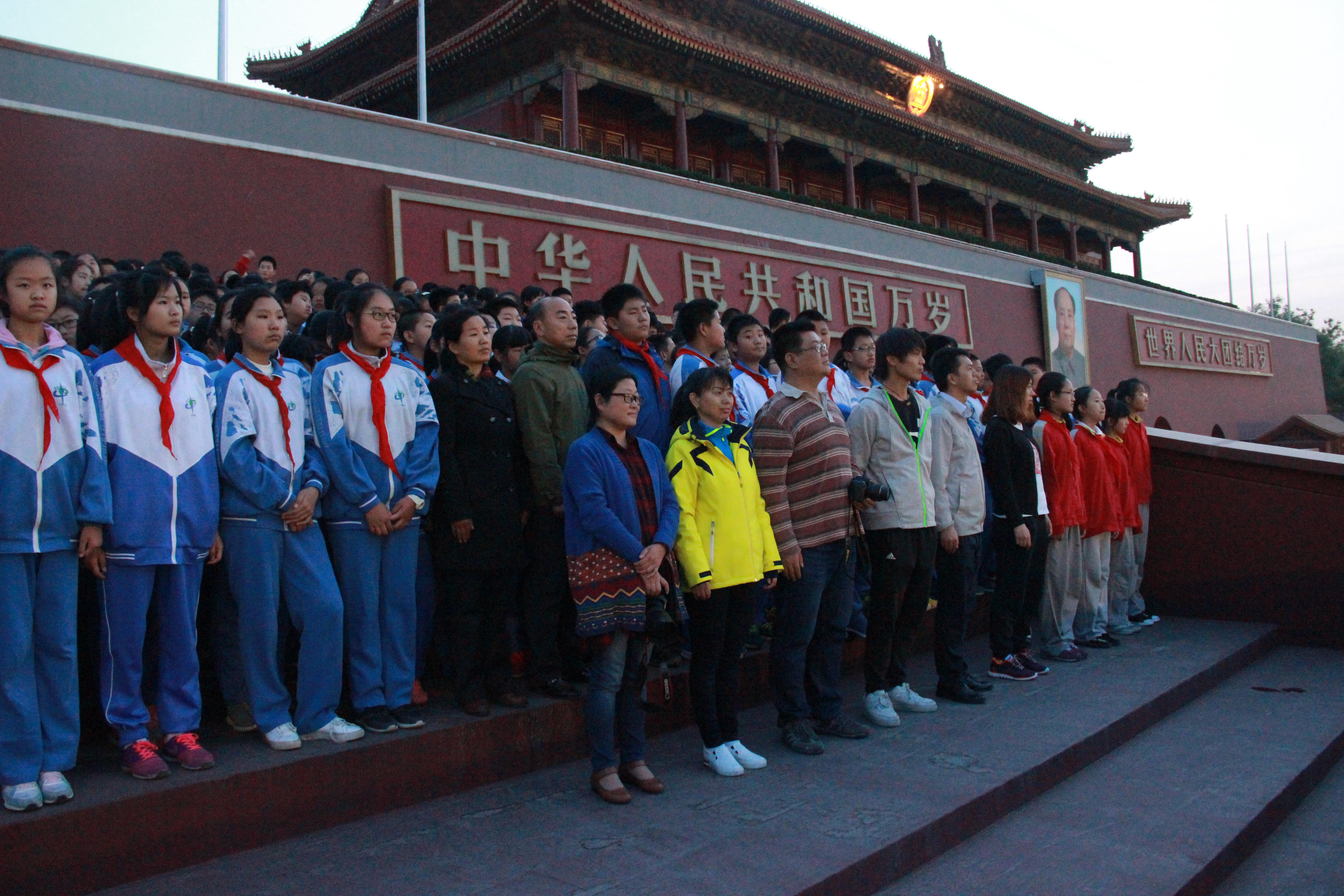 为不断加强学生社会主义核心价值观教育,燕山教委中教科组织燕山地区初一年级七百余名师生来到天安门广场,观看庄严神圣的升旗仪式。